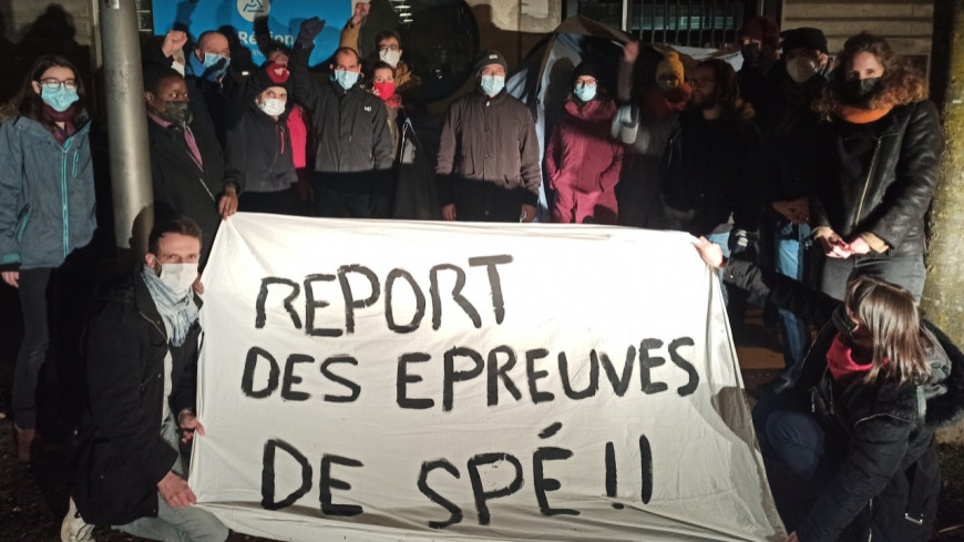 Son nom ? "La nuit du dernier chapitre". Son symbole ? Une tente plantée au pied des grilles du lycée Robert-Doisneau. Les enseignants de l’établissement de Vaulx-en-Velin ont de nouveau réclamé le report des épreuves de spécialité du bac prévues au mois de mars dans le cadre de la nouvelle réforme de l’examen.