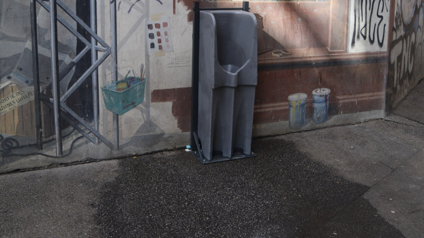 Depuis deux semaines, des urinoirs ouverts sont disséminés dans les rues afin de permettre aux squatteurs de la place Gabriel-Péri de se soulager sans avoir à rentrer chez eux, ou à le faire contre un mur.
