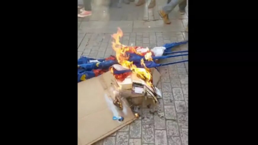 Drapeaux français et européens brulés... Poutine doit se frotter les main de voir qu'il y a des manifs pro-Russe et pro-Poutine en France