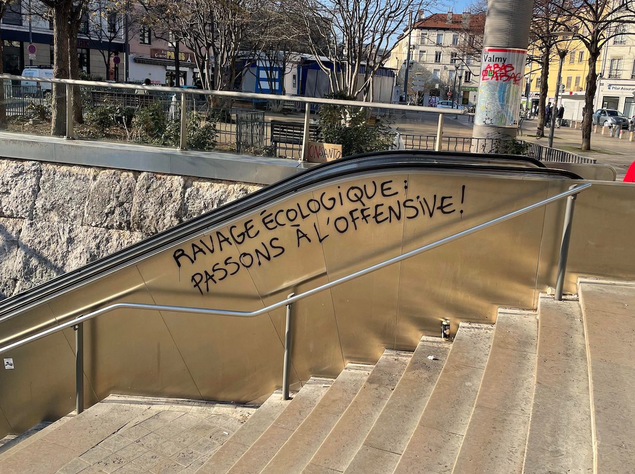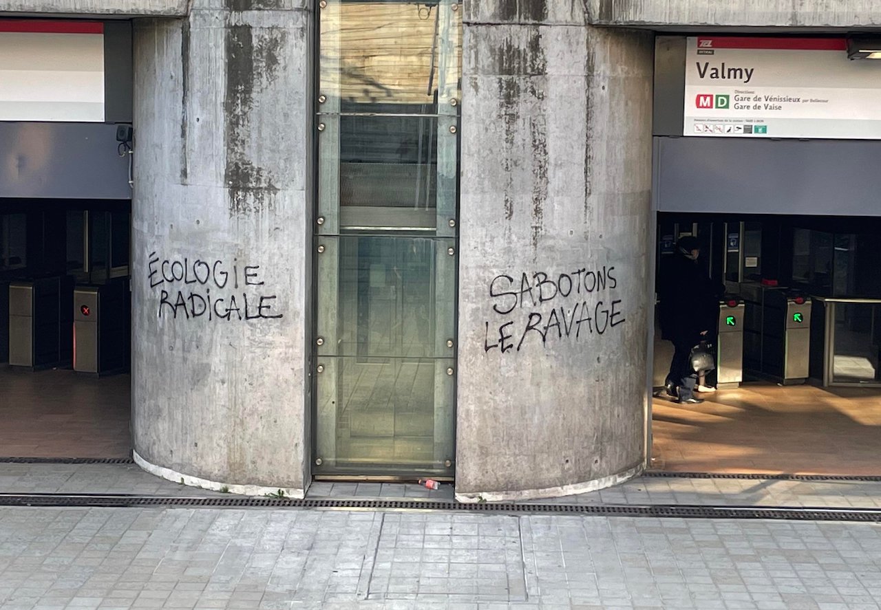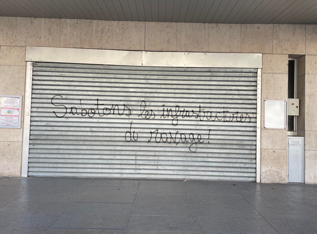 Le volet de l’entrée de la mairie a aussi été tagué d’un "Sabotons les infrastructures du ravage".