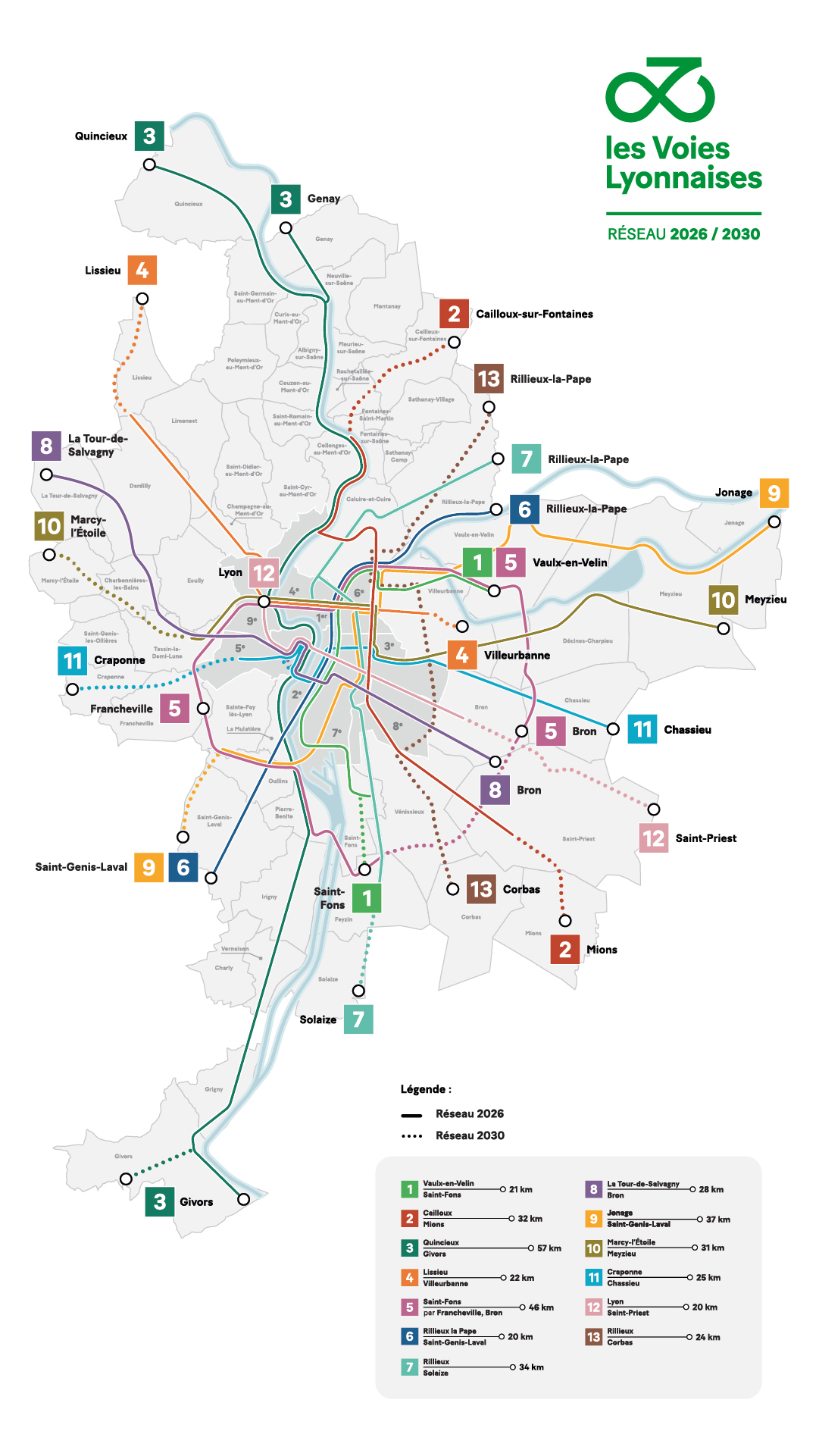 A terme, et après de nombreuses autres phases de chantier, cette ligne 1 reliera Vaulx-en-Velin et Saint-Fons sur 20,5 kilomètres de pistes cyclables. L’itinéraire au départ du Mas du Taureau pour desservir le campus de la Doua, Gerland et la Vallée de la Chimie passera donc par les quais du Rhône. Les écologistes visent 2026 pour inaugurer en totalité cette 1ere Voie Lyonnaise.
