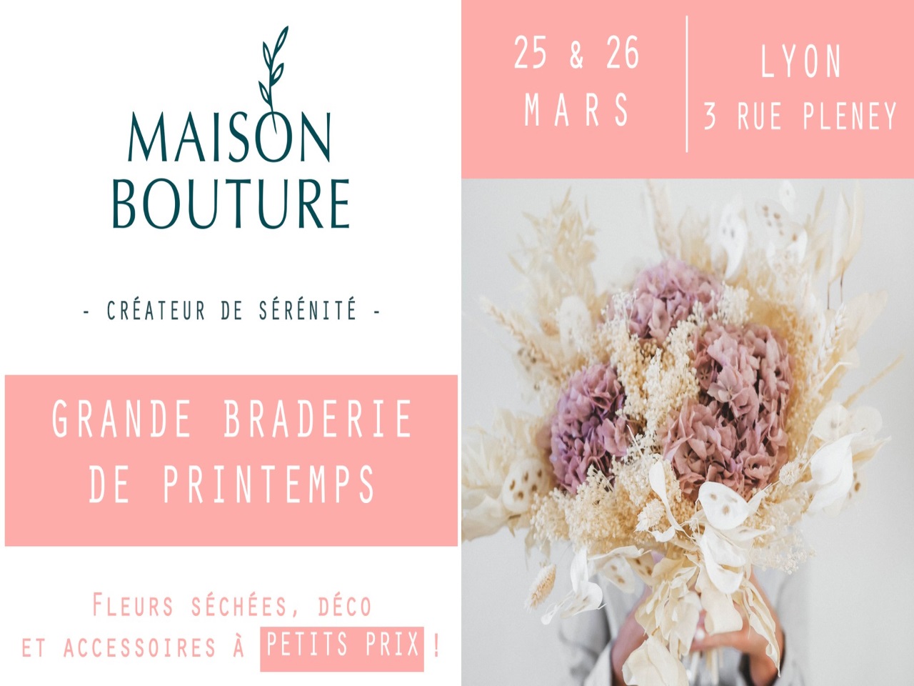Fleurissez et colorez vos intérieurs en trouvant votre bonheur chez Maison Bouture à l’occasion de sa grande braderie du printemps. L’évènement se déroule vendredi et samedi de 10h à 19h au 3 rue Pleney dans le 1er arrondissement. A découvrir : des fleurs séchées en bottes, en couronnes, en bouquets, des vases et des soliflores et de la déco. Entrée gratuite. Paiements en CB privilégiés. Toutes les informations pratiques ici