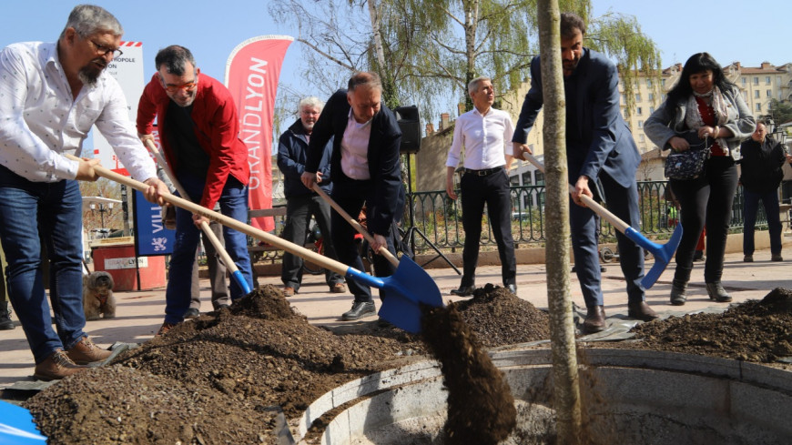 Ce lundi matin, le président de la Métropole Bruno Bernard, le maire de Lyon Grégory Doucet, le maire du 8e arrondissement Olivier Berzane ainsi que le vice-président de la Métropole chargé de l'Environnement Pierre Athanaze étaient réunis sur la place Ambroise Courtois pour la plantation de 15 nouveaux érables. Une démarche qui s’inscrit dans le Plan Nature de la Métropole de Lyon.