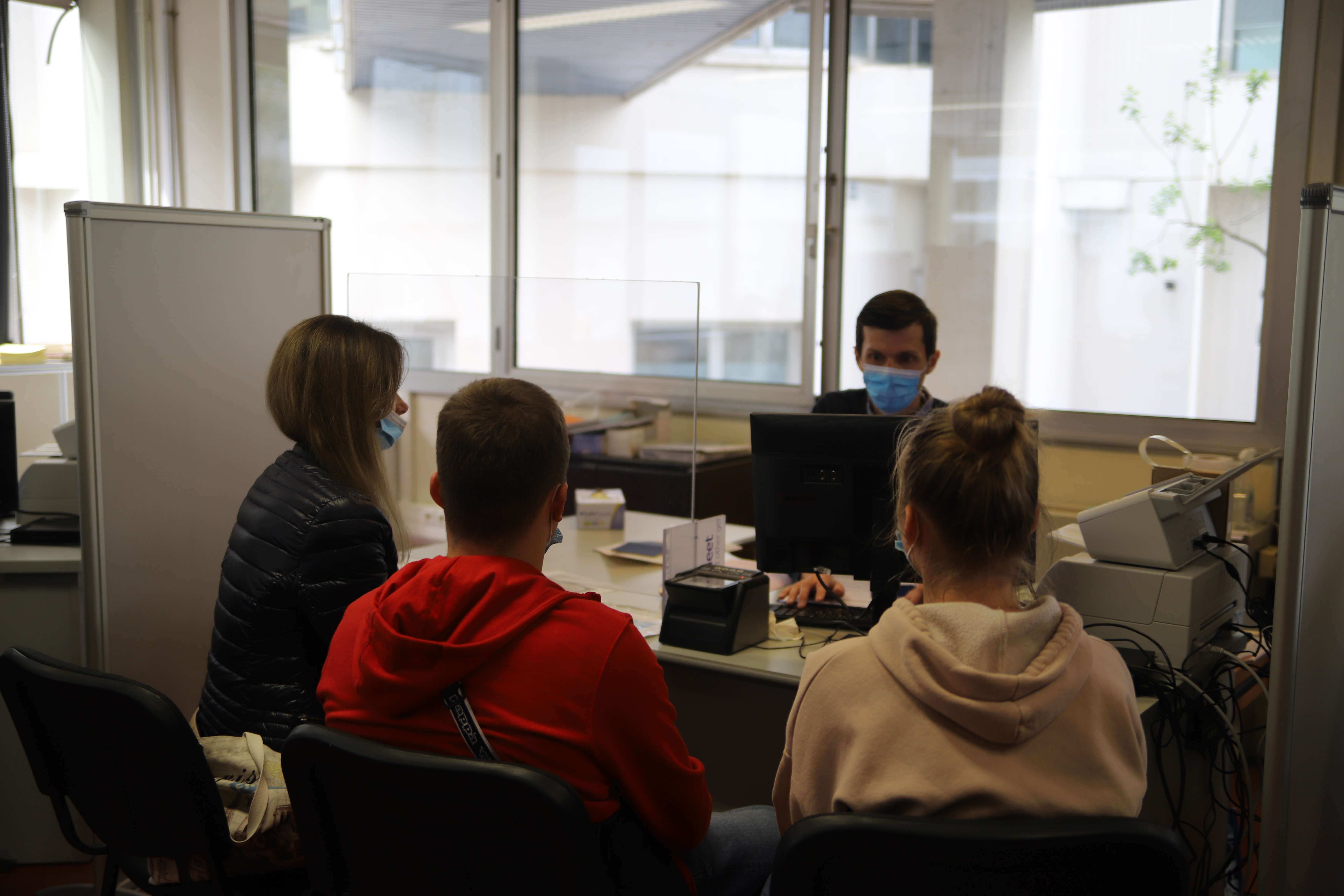 Au 22 rue Decomberousse à Villeurbanne, le centre est ouvert de 9h à 18h sans rendez-vous. Le lieu est submergé de personnes déplacées d’Ukraine, majoritairement des femmes et des enfants. Sans compter la file d’attente à l’entrée du bâtiment, tous les sièges sont pris dans les différents services du centre. Il y règne une ambiance d’aéroport.