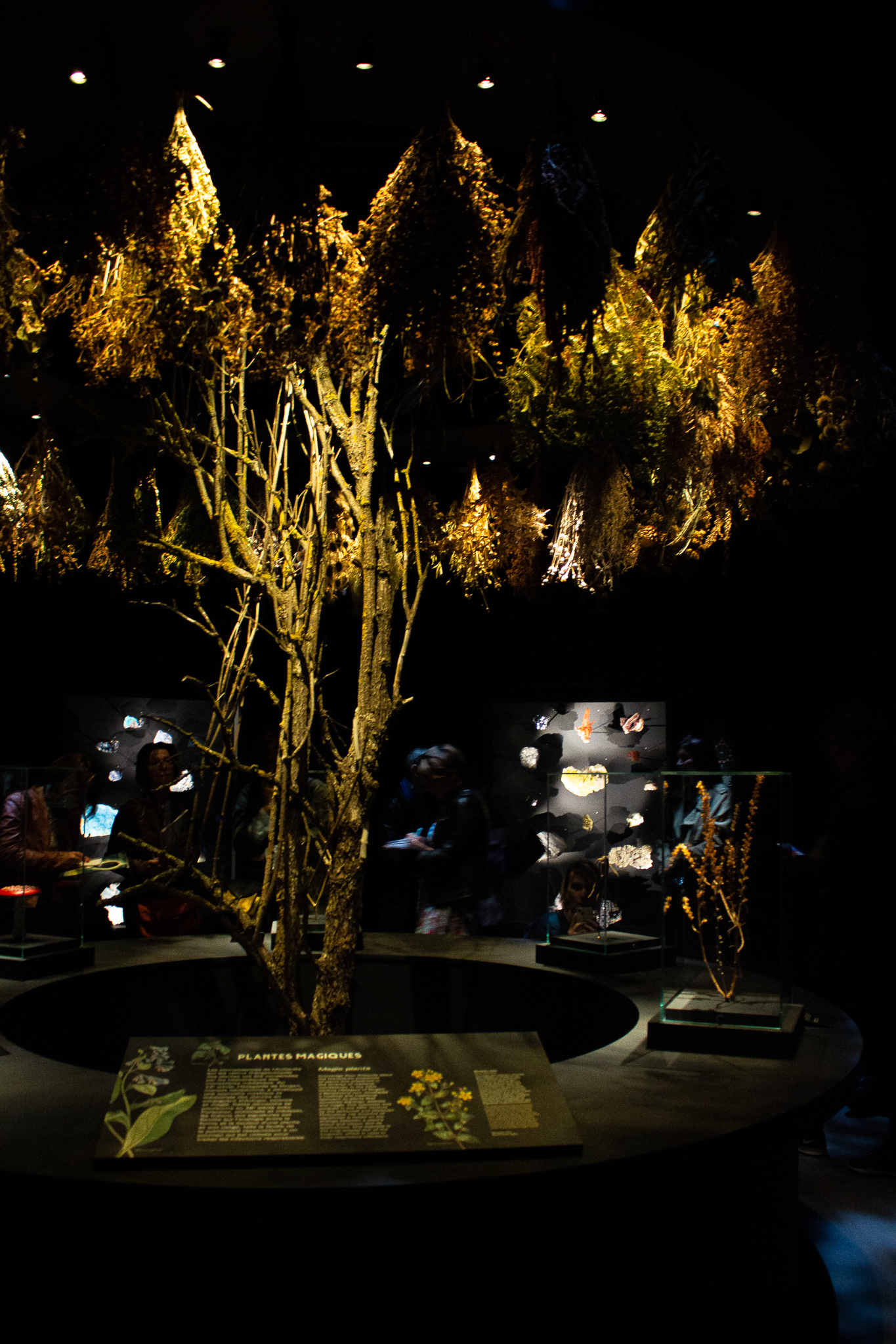Celle-ci a été conçue par Marion Lyonnais, scénariste, comme un parcours initiatique où nos sens sont en éveil. Une odeur et des sons d’ambiance ont été imaginés afin de rentre l’exposition immersive. Forêt, audiovisuels et mobilier géométrique rappelant des rituels magiques créent cette ambiance mystique. D’ailleurs, Rémi David, écrivain et magicien, a ajouté sa touche de magie à la scénarisation de l’exposition.
