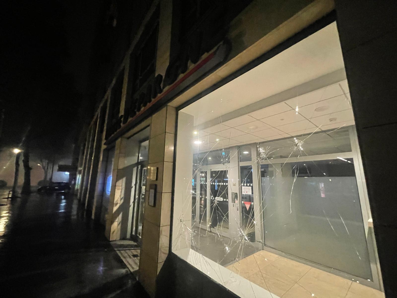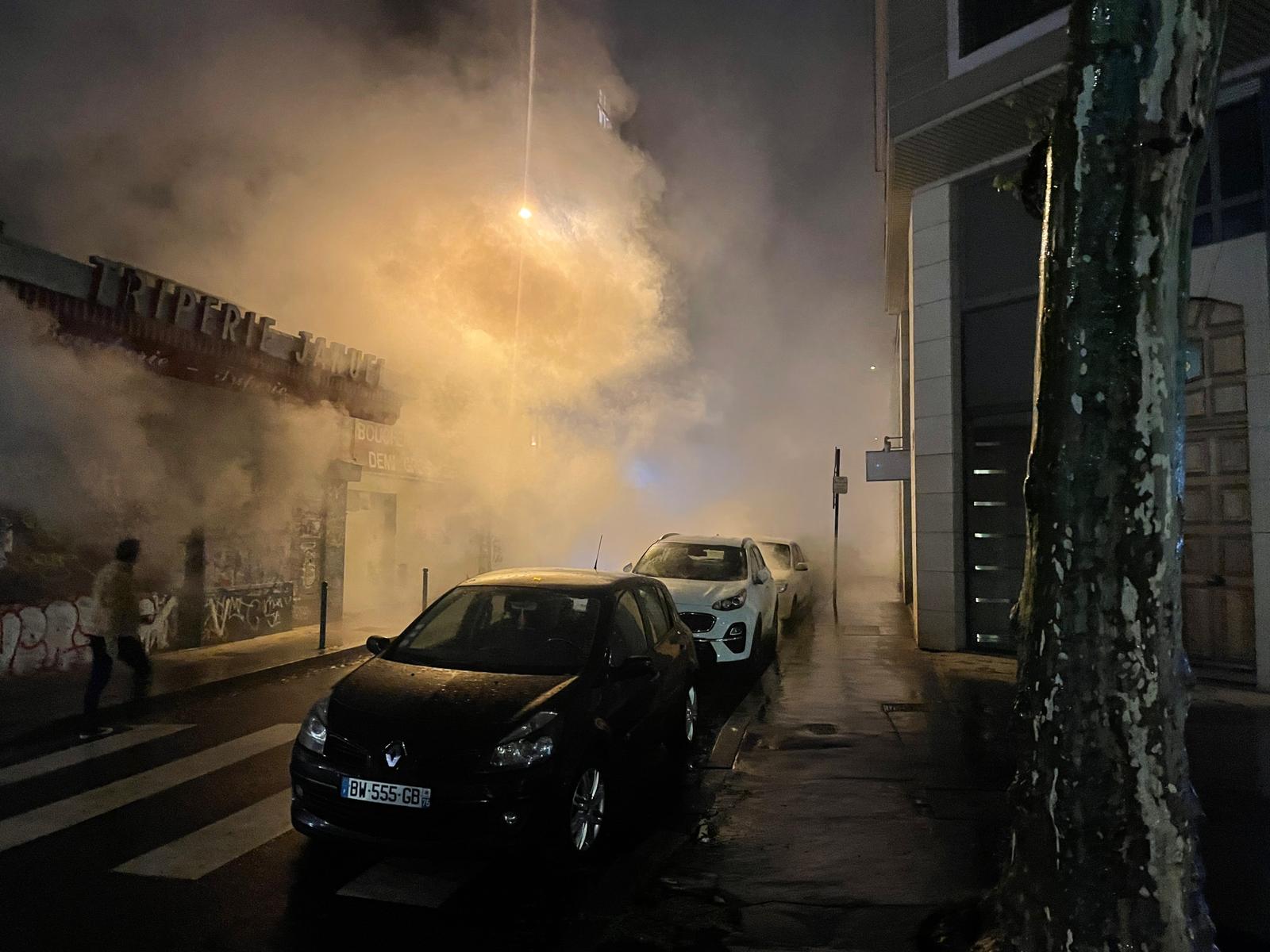 Des feux d’artifice ont été tirés. Plusieurs barrages composés de poubelles ont été érigés, des tentatives d’incendies de ces dernières ont été faites, mais la pluie a fait capoter le plan des casseurs qui se sont rattrapés en attaquant une banque Caisse d’Epargne.