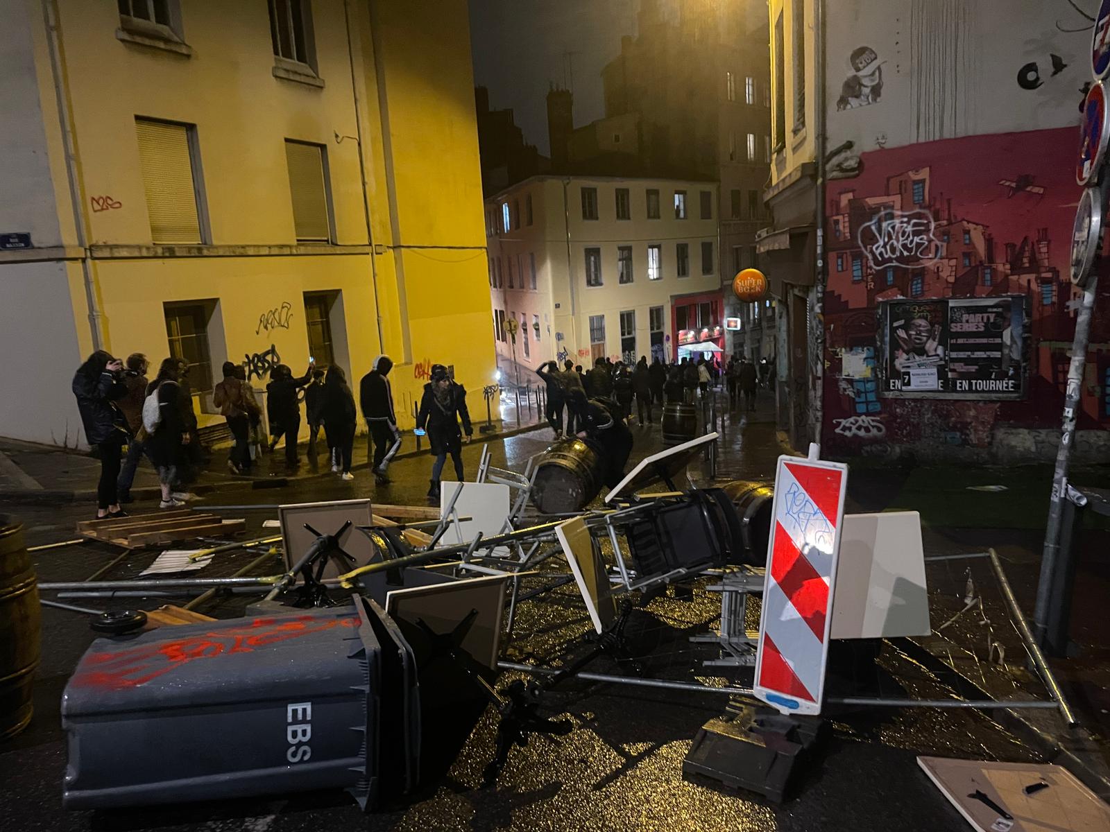 Les manifestants ont remonté les Pentes jusqu’au boulevard de la Croix-Rousse où un dispositif policier les a repoussés. Un tir de mortier d'artifice a été réalisé sur la façade de la mairie du 4e arrondissement.