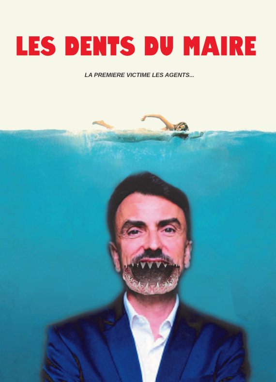 "Les dents du maire, la première victime : les agents", peut-on ainsi lire sur cette parodie. Le but de ce détournement : dénoncer la suppression d'une prime saisonnière pour le personnel des piscines municipales de Lyon qui servait à compenser les heures de formation des agents contractuels embauchés lors de la période estivale (montant total de cette prime : 34 447 euros en 2020).