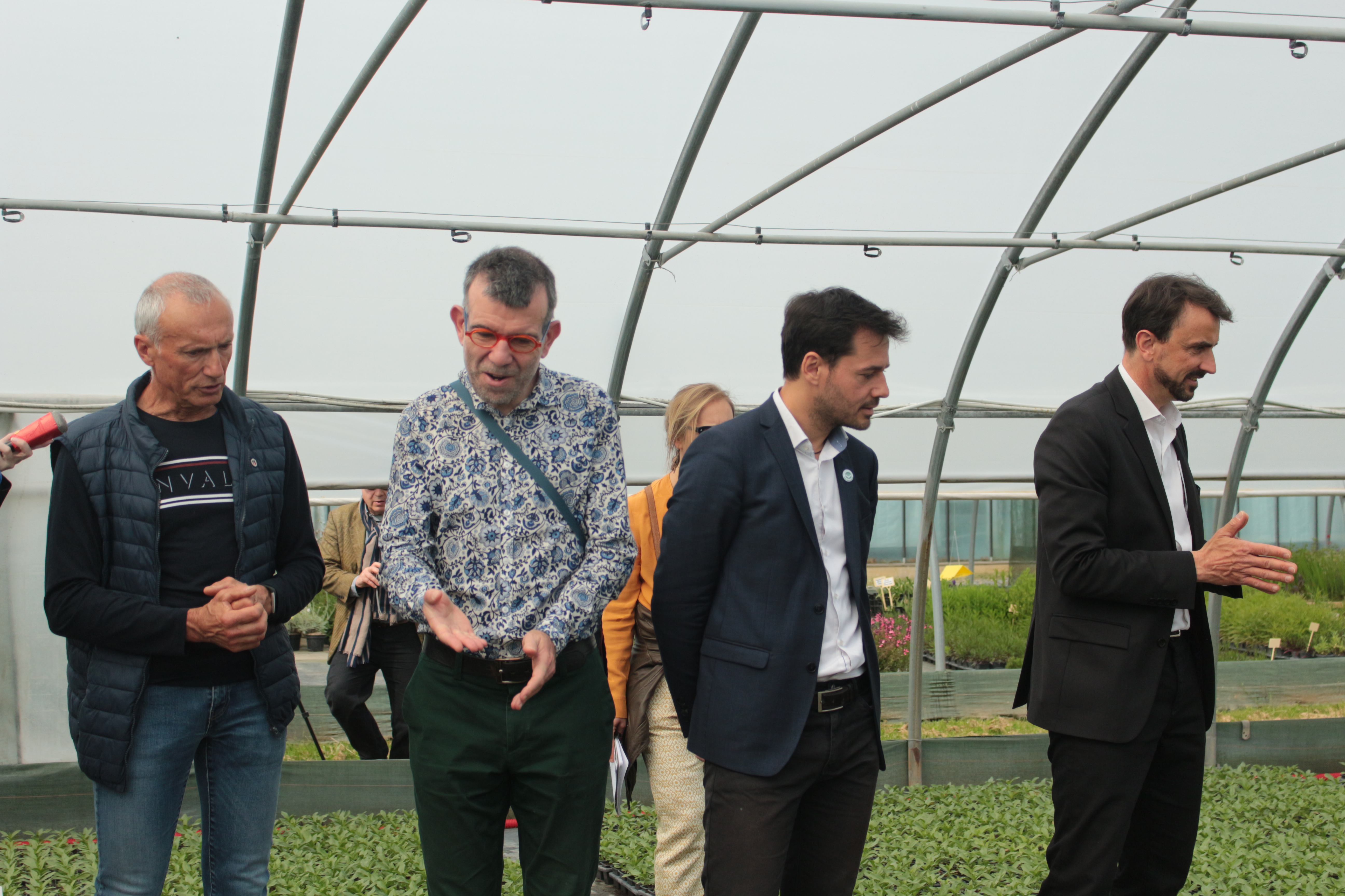 Grégory Doucet, le maire de Lyon, Nicolas Husson, l’adjoint au maire délégué à la biodiversité et à la nature en ville et Gautier Chapuis, le conseiller délégué à l’alimentation locale et à la sécurité alimentaire, ont dévoilé leur nouveau "plan nature" ce mardi matin, dans le centre horticole de la Ville de Lyon situé à Cibeins.