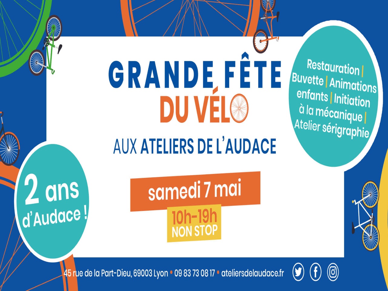 L’évènement est organisé par les Ateliers de l’Audace dans le 3e arrondissement. Cette fête sera également l’occasion de fêter les 2 ans de l’association. Vente de vélos et animations seront au programme le tout dans un esprit de guinguette. Le détail de l’évènement est à retrouver ici