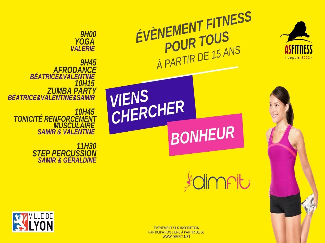 C’est le bon plan sportif du week-end ! L’association DimFit organise ce dimanche une matinée permettant de découvrir le fitness avec plusieurs cours : yoga, zumba, step, renforcement musculaire… La participation est libre mais il faut s’inscrire en ligne. Le rendez-vous est donné au Hall des Sports de Lyon dans le 3e arrondissement. Les informations ici