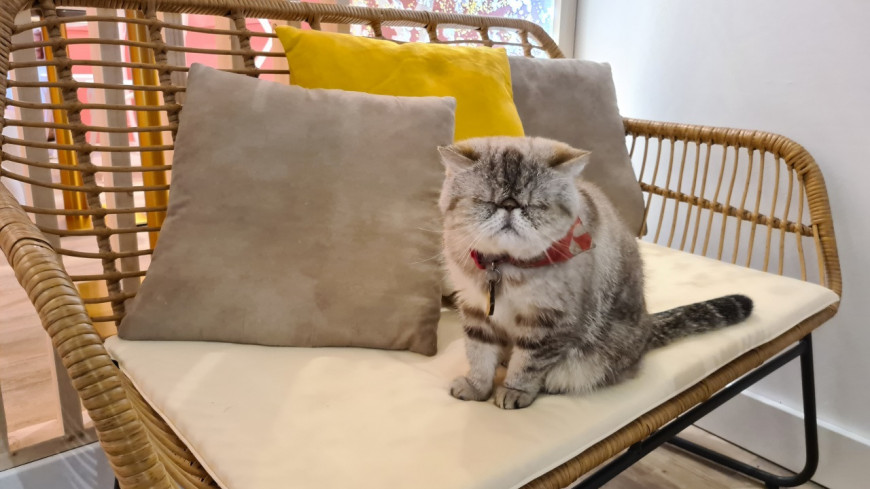 "L’objectif était vraiment d’avoir plus de place pour qu’on puisse déambuler et mieux profiter des chats", expliquent les propriétaires. Olympe, Charline, Louise, Jeanne… Ce sont en effet dix chats qui accompagneront le moment de travail ou de gourmandise des clients.