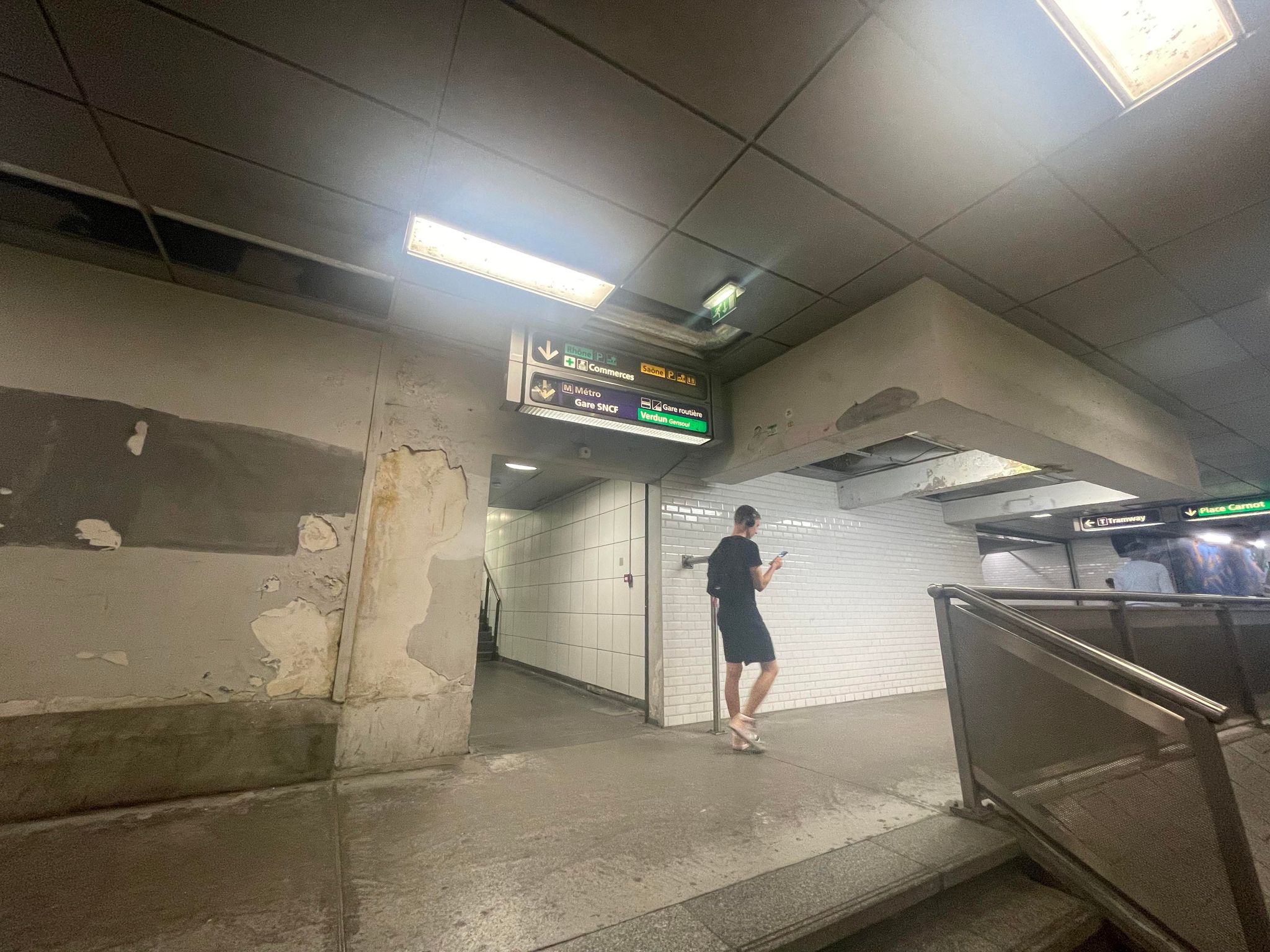 Reste que toutes ces marques au sol ne s’étalent que sur quelques mètres, sans continuer jusqu’aux autres modes de transport présents dans la gare Perrache. Si la sortie vers la place Carnot semble plus limpide, dès que l’on se dirige vers les autres directions la situation se complique. Les panneaux de direction d’un ancien temps semblent pour certains prêts à tomber, les murs sont délabrés, et cette odeur d’urine se fait toujours plus présente.