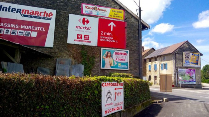 La commune du Nord-Isère avait été épinglée pour ses multiples panneaux publicitaires accrochés à la façade d'un bâtiment ancien : "La plupart des panneaux sont illégaux. Heureusement, le maire, qui n'y connait rien, a déclaré ne pouvoir rien faire parce que c'était chez des particuliers", pouvait-on lire sur le compte Twitter de Paysages de France.