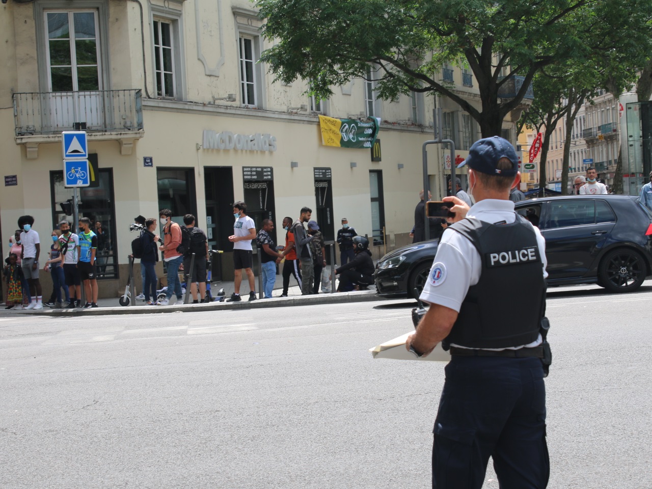 Mardi après-midi, dans le 7e arrondissement de Lyon. Trois équipages de CRS assurent la sécurité sur la place Gabriel-Péri. Les lieux sont donc plutôt calmes, même si des vendeurs à la sauvette interpellent toujours les passant pour leur vendre des contrefaçons de cigarettes.
