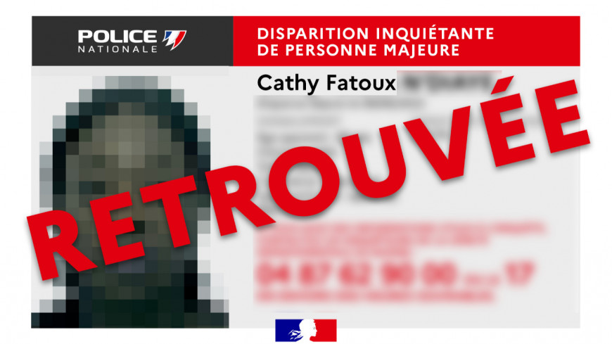 "Cathy Fatoux a été retrouvée saine et sauve grâce à votre mobilisation et vos nombreux partages", indique la DDSP du Rhône.