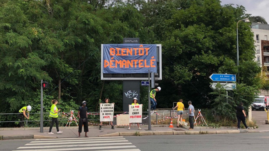 En effet, une vingtaine de personnes ont décidé de simuler le démantèlement de plusieurs écrans publicitaires géants sur les communes d'Ecully, Limonest, Dardilly et Rillieux-La-Pape pour "donner un avant-gout de l'amélioration pour le quotidien des grands lyonnais".