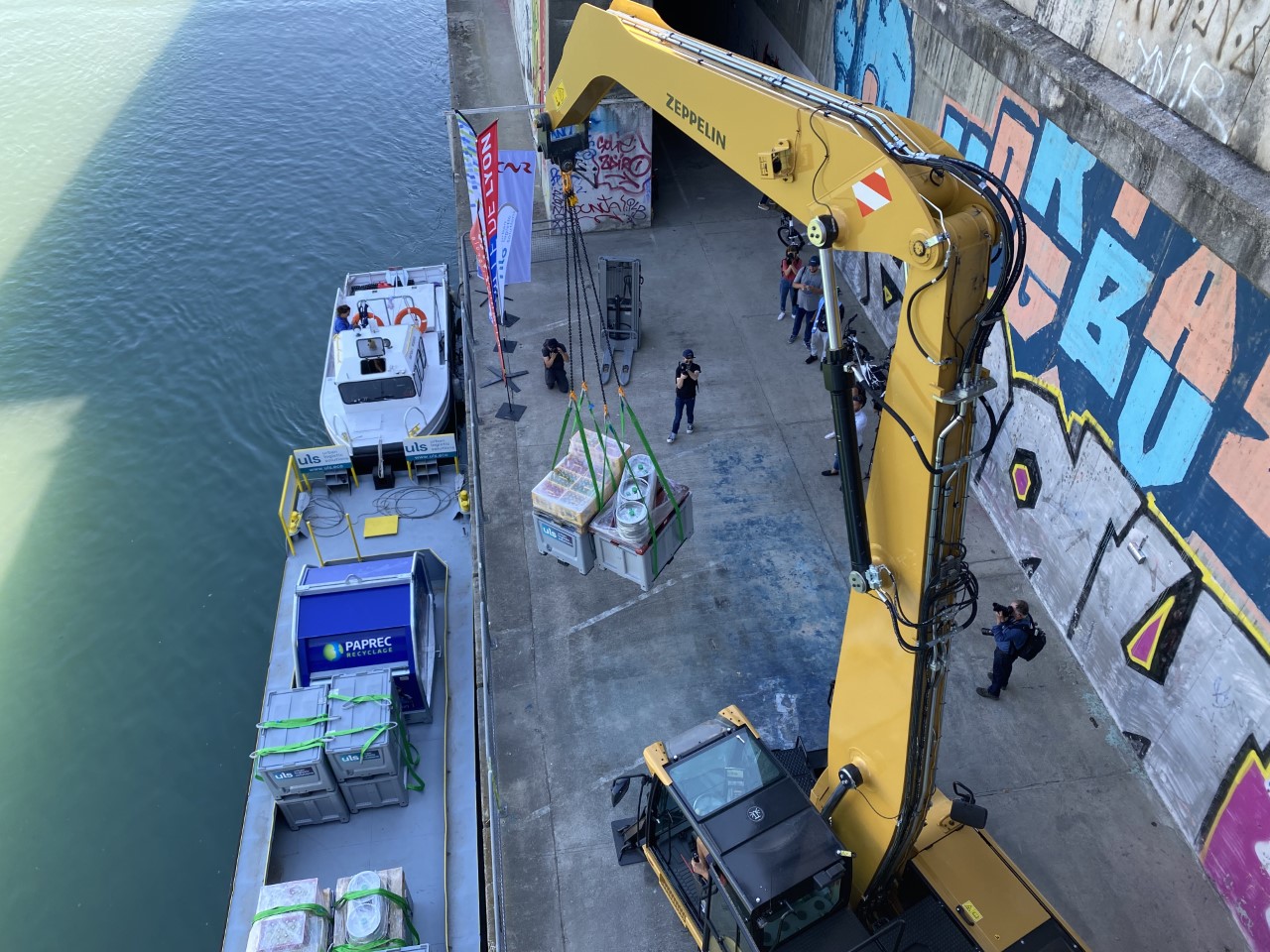 En se penchant sur le Rhône, sur le pont Morand, il est maintenant possible d’apercevoir un bateau qui livre de la bière. Elle est ensuite transbordée sur le quai grâce à une grue 100% électrique qui permet à des livreurs en vélo électriques de récupérer la marchandise à livrer sur la Presqu’ile. C’est tout le concept imaginé par ULS, la première solution de livraison en centre-ville par voie fluviale et vélos à assistance électrique.