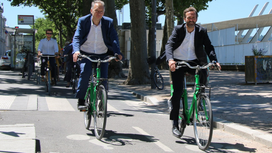 Vélo entre les jambes et casque sur la tête, l'édile était à la tête, avec Bruno Bernard, d'un cortège d'élus, de militants, de membres d'associations et de journalistes qui a avalé ce premier kilomètre en 5 minutes. "Un vrai plaisir", s'est réjoui le président de la Métropole de Lyon en donnant des coups de pédale sur un revêtement tout neuf.