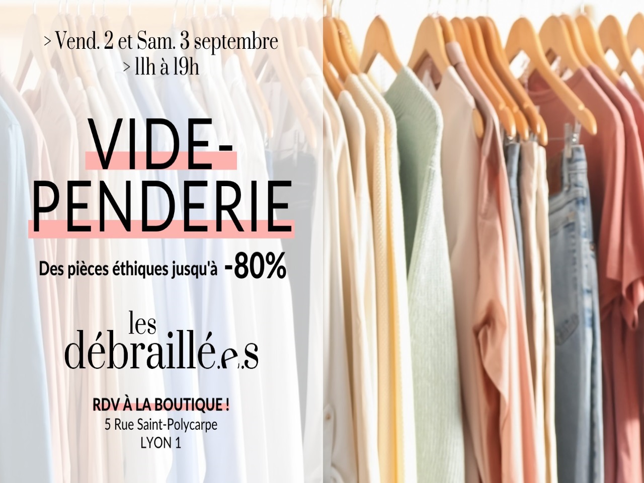 Le rendez-vous mensuel des Débraillé.e.s est de retour. Découvrez de nouveau un vide-penderie avec des pièces éthiques ou de seconde main à prix tout doux. L’occasion de renouveler sa garde-robe et de découvrir le concept. Le rendez-vous est donné ce vendredi et ce samedi de 11h à 19h à la boutique des Débraillé.e.s au 5 rue Saint-Polycarpe dans le 1er arrondissement. Entrée libre et gratuite. Toutes les informations sur l’évènement ici