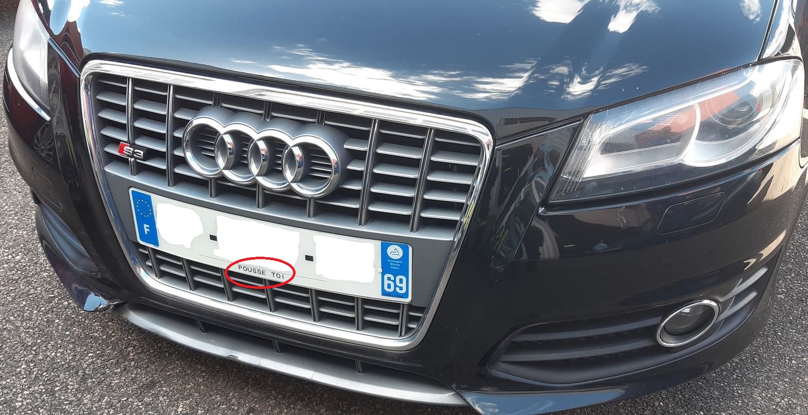 Un homme a été interpellé après avoir commis plusieurs délits au code de la route. Mais en s'approchant du véhicule, les gendarmes ont remarqué une modification de la plaque d'immatriculation. A l'avant, on pouvait lire "Pousse-toi" et à l'arrière : "Rattrape-moi si tu peux".