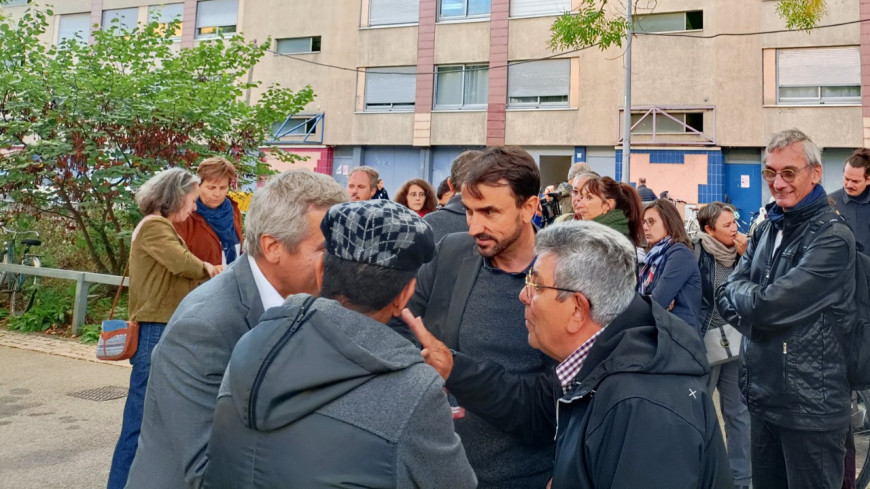 Avec quelques habitants du quartier Mermoz, le maire écologiste, accompagné notamment de la vice-présidente de la Métropole de Lyon Béatrice Vessiller et de la sous-préfète Salwa Philibert, a inauguré la Maison du Projet des Quartiers politique de la ville du 8e - Mermoz, Langlet, Santy Etats-Unis et Moulin-à-Vent.