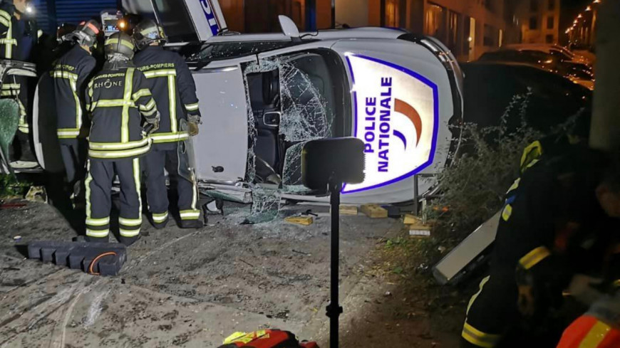 Dans des circonstances qui restent à déterminer, deux véhicules de police qui se rendaient sur les lieux d'un accident de moto ont eu un terrible accident rue Sergent Michel Berthet, à l'angle de la rue Saint-Pierre de Vaise. Selon nos informations, une voiture a terminé sur le toit, l’autre sur le flanc.