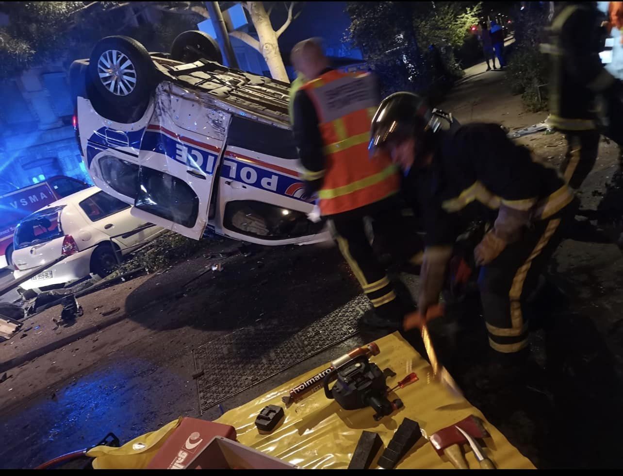 "Un grand merci aux pompiers qui revenaient d’une intervention à proximité et dont la prise en charge importante a pu être très rapide , notamment la désincarcération d’un de nos collègues", a réagi le syndicat Alliance Police.