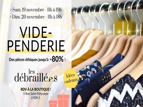 Le rendez-vous mensuel des Débraillé.e.s est de retour. A l’approche des fêtes de fin d’année, retrouvez un vide-penderie avec des pièces éthiques ou de seconde main à prix tout doux. Des pièces chinées à 2 euros seront à saisir. Le rendez-vous est donné ce vendredi et ce samedi de 11h à 19h et ce dimanche de 11h à 18h à la boutique des Débraillé.e.s au 5 rue Saint-Polycarpe dans le 1er arrondissement. Entrée libre et gratuite. Toutes les informations sur l’évènement ici