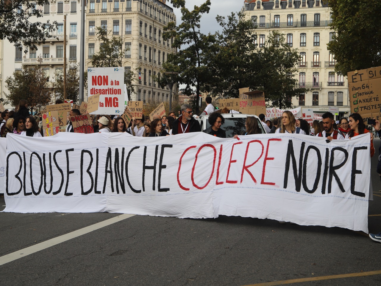 Les médecins généralistes ont tenu à soutenir le mouvement en se joignant au rassemblement pour dénoncer le manque de moyens pour la profession. L’ensemble du cortège a quitté la place Bellecour pour rejoindre la préfecture du Rhône aux cris des étudiants : "Non à la coercition" et "stop au mépris".
