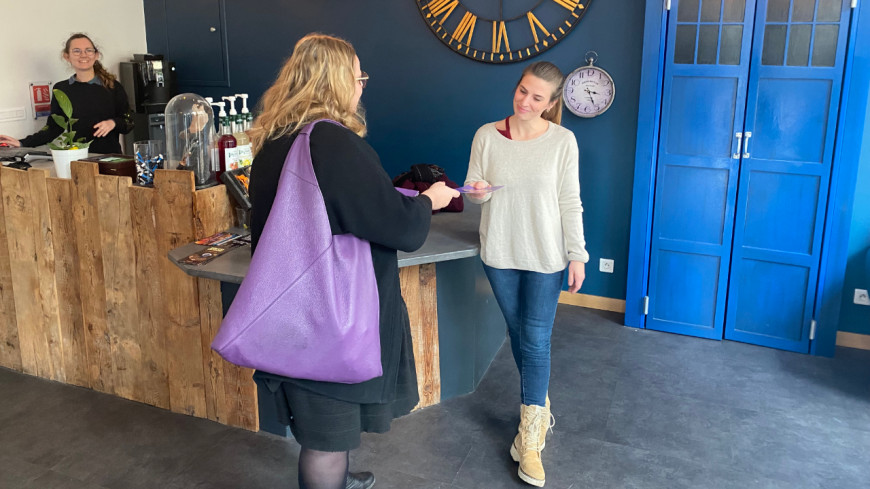 Grâce à un autocollant "Angela" collé sur la vitrine des commerçants formés, les victimes savent qu’elles seront accueillies de manière appropriée si elles se sentent en danger.