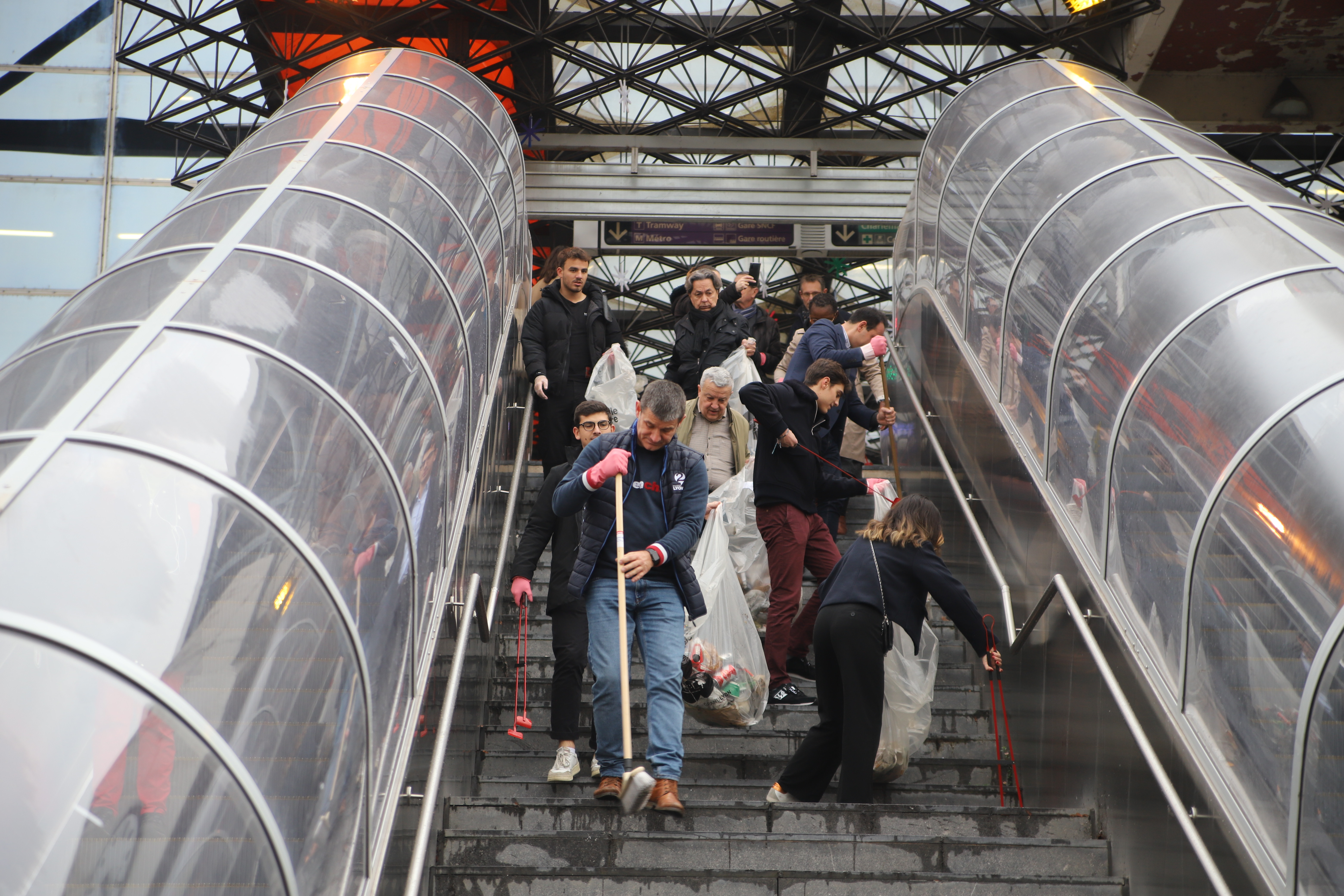 Gants roses, balais, pinces, élus et bénévoles ont rempli 7 large sacs de déchets. Les escaliers aux abords du métro A ont été largement nettoyés. Au milieu des passants et des remerciements de certains, les bénévoles n’ont pas hésité à ramasser dans les moindres recoins. Ne laissant pas la gare comme neuve, mais en bien meilleur état qu’avant leur passage.