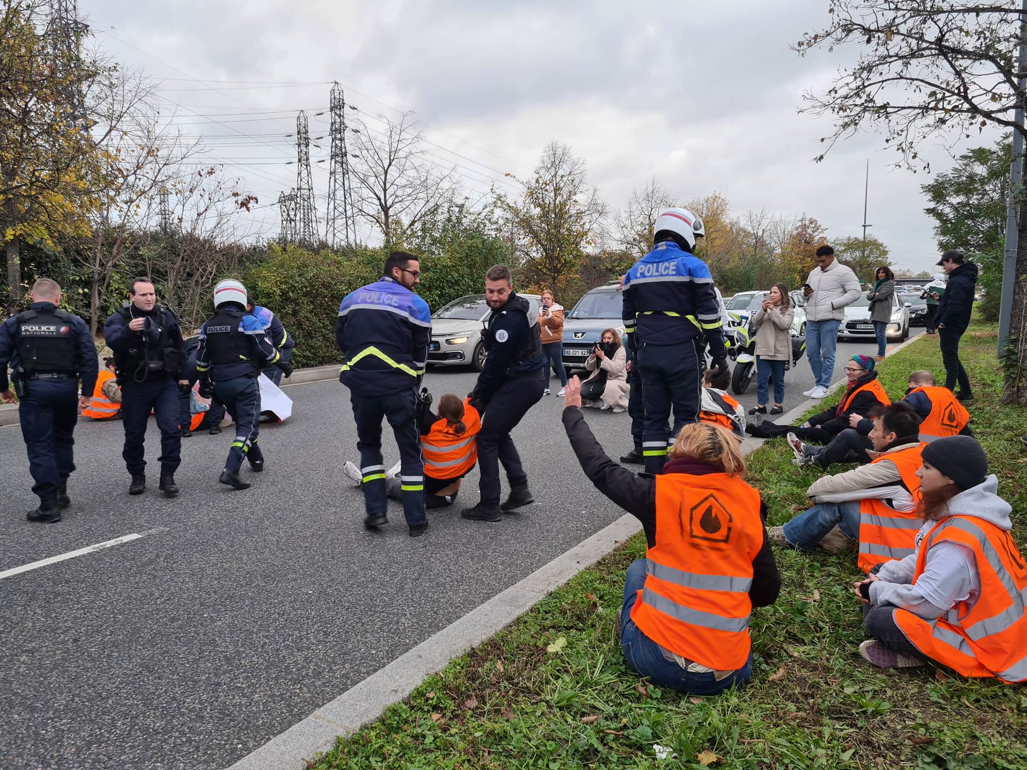 Après la M7 au niveau du Musée des Confluences puis l'entrée du tunnel sous Fourvière, ils ont choisi la sortie du périphérique Laurent-Bonnevay à Gerland pour s'assoir sur les voies et bloquer la circulation.