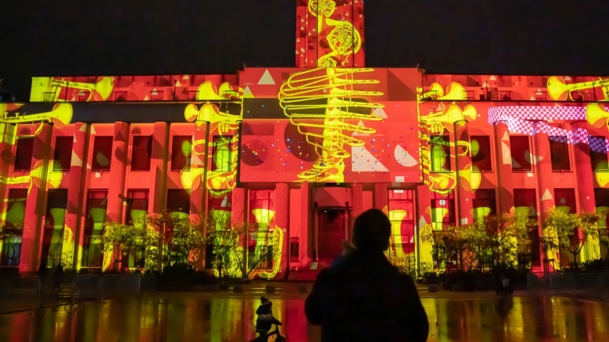 Projeté sur la façade de l’Hôtel de Ville et place Lazare-Goujon, il fonctionne en écho à la Fête des Lumières de la voisine lyonnaise.