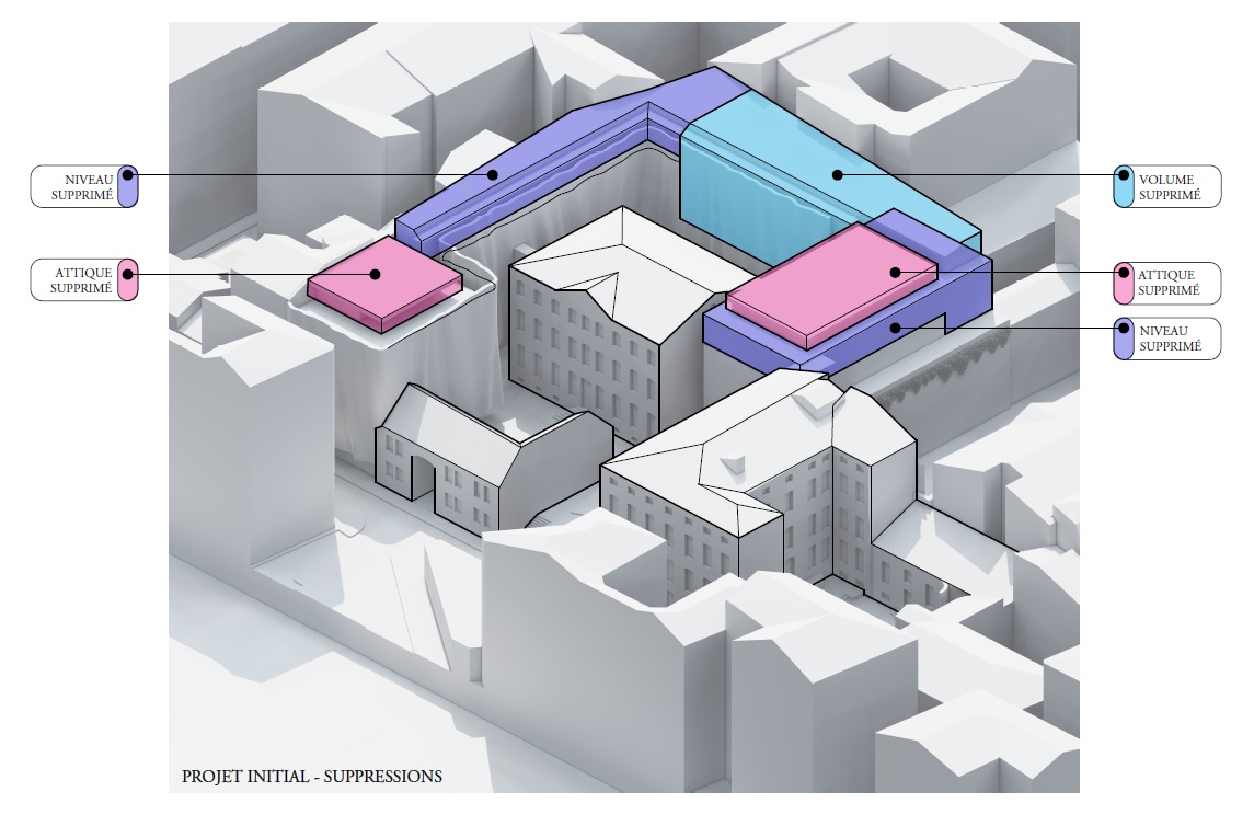 Par contre, par rapport au premier projet, le nouveau s’engage à baisser d’au moins un niveau les extensions prévues sur le musée, la dépendance et les hôtels particuliers, qui font partie intégrante de l’édifice. Pour illustrer ces réadaptations, la surface a été amoindrie de 20%.