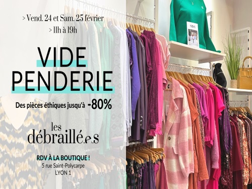 Deux jours pour faire de bonnes affaires. Le rendez-vous mensuel des Débraillées est de retour ce week-end avec au bout le plein de pièces éthiques et de seconde main à des prix très attractifs. Des marques lyonnaises ou nationales engagées seront à retrouver avec jusqu’à -80% de réduction. Direction la boutique du concept situé 5 rue Saint-Polycarpe dans le 1er arrondissement de 11h à 19h ce vendredi et ce samedi. Entrée libre et gratuite. Toutes les informations ici