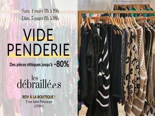 C’est déjà le retour du vide-penderie du concept basé dans le 1er arrondissement de Lyon. Les Débraillées proposent ce week-end un nouvel évènement où il sera possible de dénicher des pièces éthiques et de seconde main à prix tout doux. Des marques lyonnaises ou nationales engagées sont à retrouver avec des promotions allant jusqu’à -80%. Rendez-vous samedi (11h-19h) et dimanche (11h-18h). Entrée libre et gratuite. Toutes les informations ici