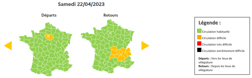 Le trafic s’annonce ainsi chargé ce samedi en Auvergne-Rhône-Alpes selon Bison Futé, qui hisse le drapeau orange dans le sens des retours. L’Île de France est aussi concernée pour les départs.