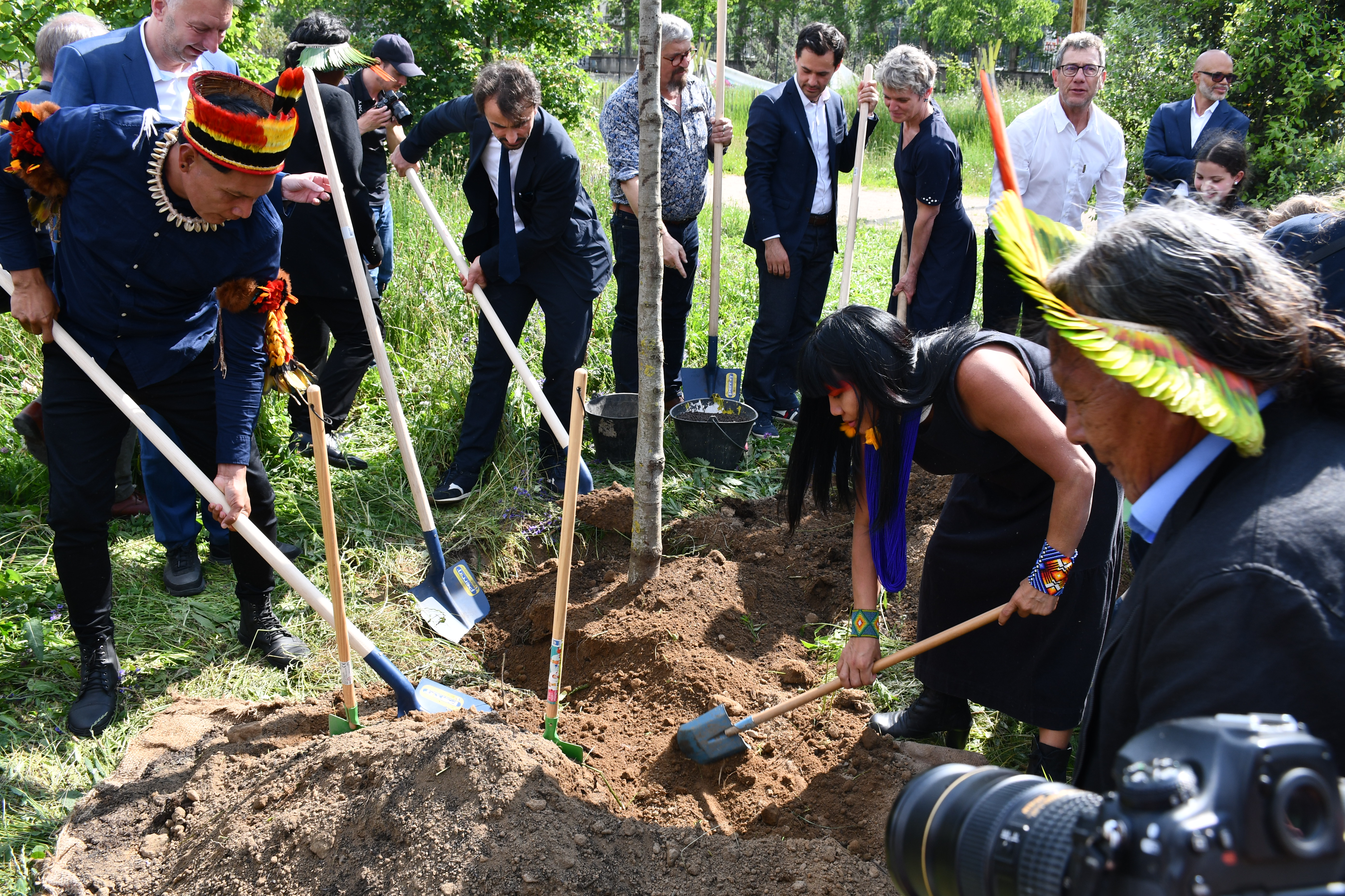 Au terme de la conférence de presse, élus, enfants et chefs indigènes ont planté un arbre pour symboliser l’importance de la forêt dans la lutte contre le réchauffement climatique.