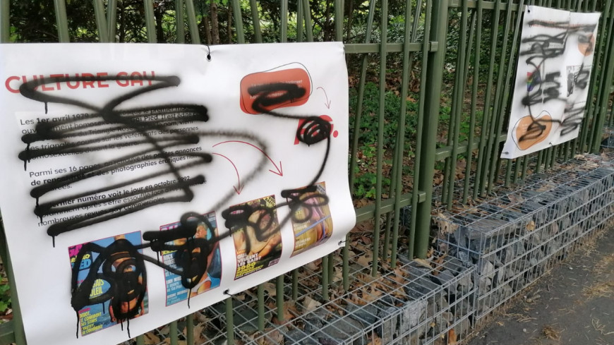 "Profondément indignées", la maire Nadine Georgel et son adjointe Sophia Popoff se sont résignées à faire enlever l'exposition "L'histoire des luttes LGBTI" des grilles du parc Champvert après une nouvelle dégradation.