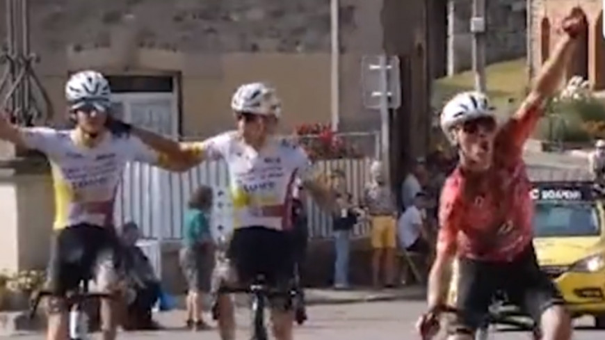 Juste avant la ligne d’arrivée de la course, un scénario improbable s’est déroulé sous le regard médusé des spectateurs. Alors que deux coureurs de l’équipe stéphanoise de l’ECSEL se tenaient par les épaules pour franchir les derniers mètres ensemble, un concurrent a dépassé le duo sur le fil ! Ce dernier, Simon Ruet, est un membre du Vélo Club Villefranche-Beaujolais, au nord de Lyon donc. Il a depuis été interviewé par plusieurs médias pour raconter son anecdote insolite et son effort.