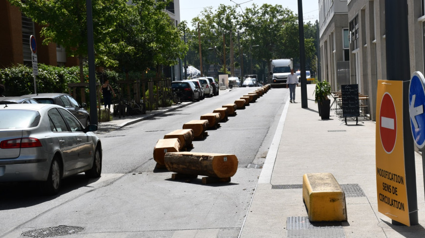Pierre Oliver, maire du 2e arrondissement de Lyon, est tombé des nues en trouvant une série d'une vingtaine de troncs d'arbres au beau milieu de la rue Jacqueline et Roland de Pury. Ce qui ressemblent à des bancs, qui sont en réalité des demi-troncs d'arbres, ont été disposés au milieu de la rue, afin de signifier aux automobilistes que la rue était désormais à sens-unique.