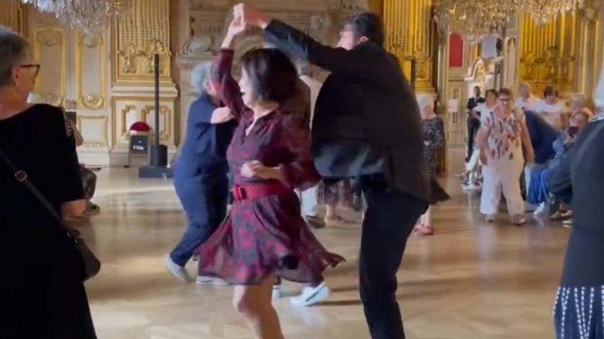 Dans le fond, on voit également son adjoint aux Personnes Agées Alexandre Chevalier s'aventurer aussi dans une danse, avec un poil moins d'aisance.