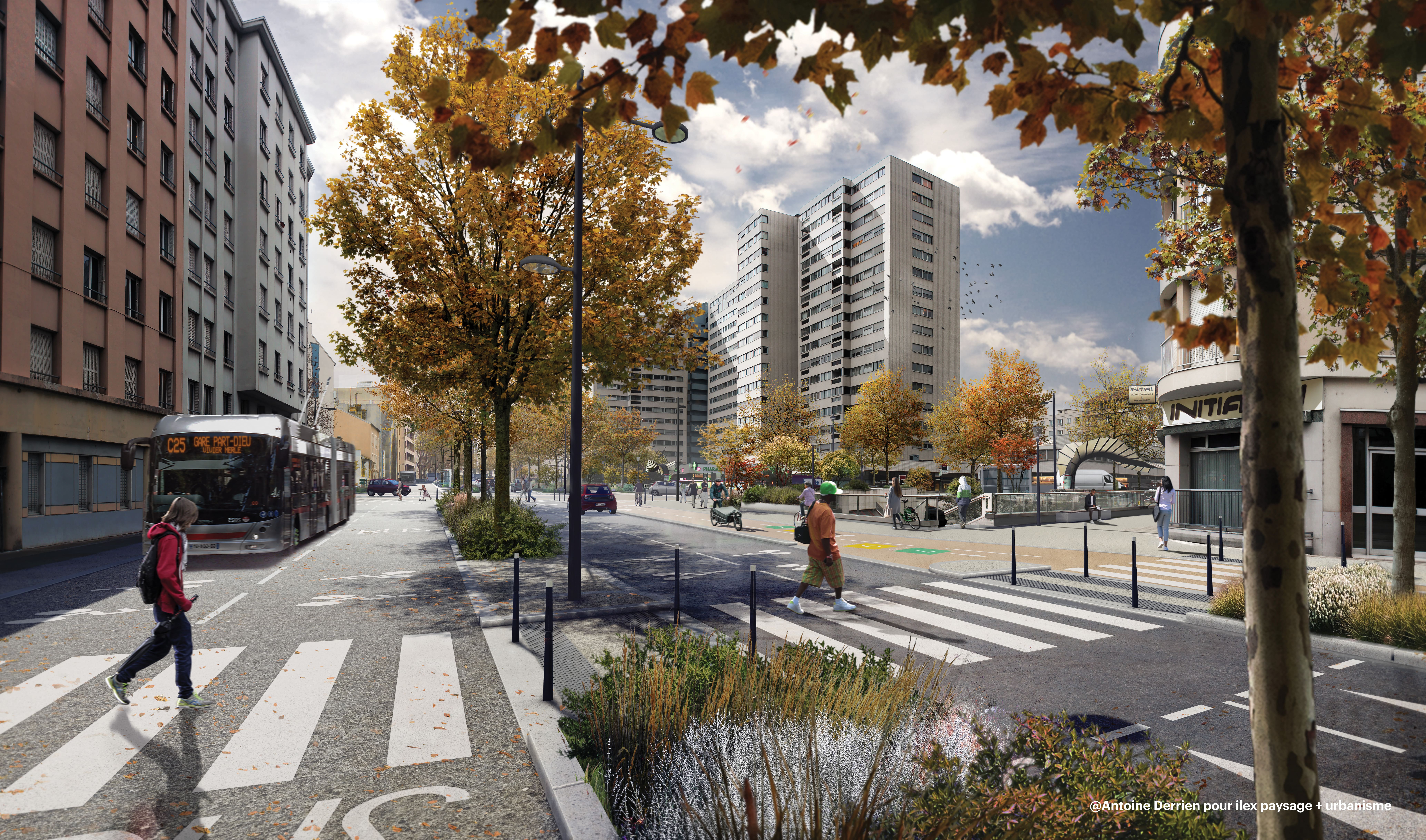 Pas plus de deux voies de circulation automobile seront conservées sur cet axe, où c’est tout un aménagement qui veut être actualisé : la trémie au niveau du cours Gambetta et du métro D sera démolie début 2024 et la circulation se fera sur les contre-allées le temps des travaux. Actuellement, les travaux de réseaux concernant l’électricité, l’eau ou encore le gaz sont en cours et les travaux d’aménagement débuteront début 2024, pour une livraison totale au printemps 2026.