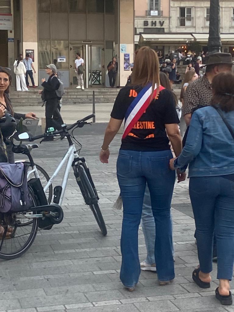 Ce mercredi soir, c'est avec l'écharpe d'élue bleu blanc rouge que Sophia Brikh s'est rendue à Lyon, place de la Comédie, pour participer à la manifestation pour la Palestine.