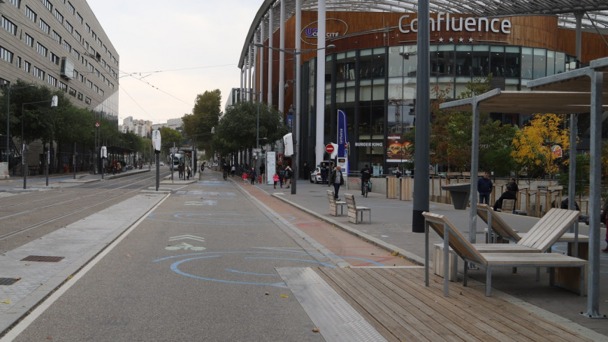 En 2021, le cours Charlemagne devenait partiellement piéton au niveau du pôle de commerces et de loisirs Confluence et de l'Hôtel de Région. Une coupure qui semble ravir les habitants, mais beaucoup moins les commerçants et les employés du quartier.