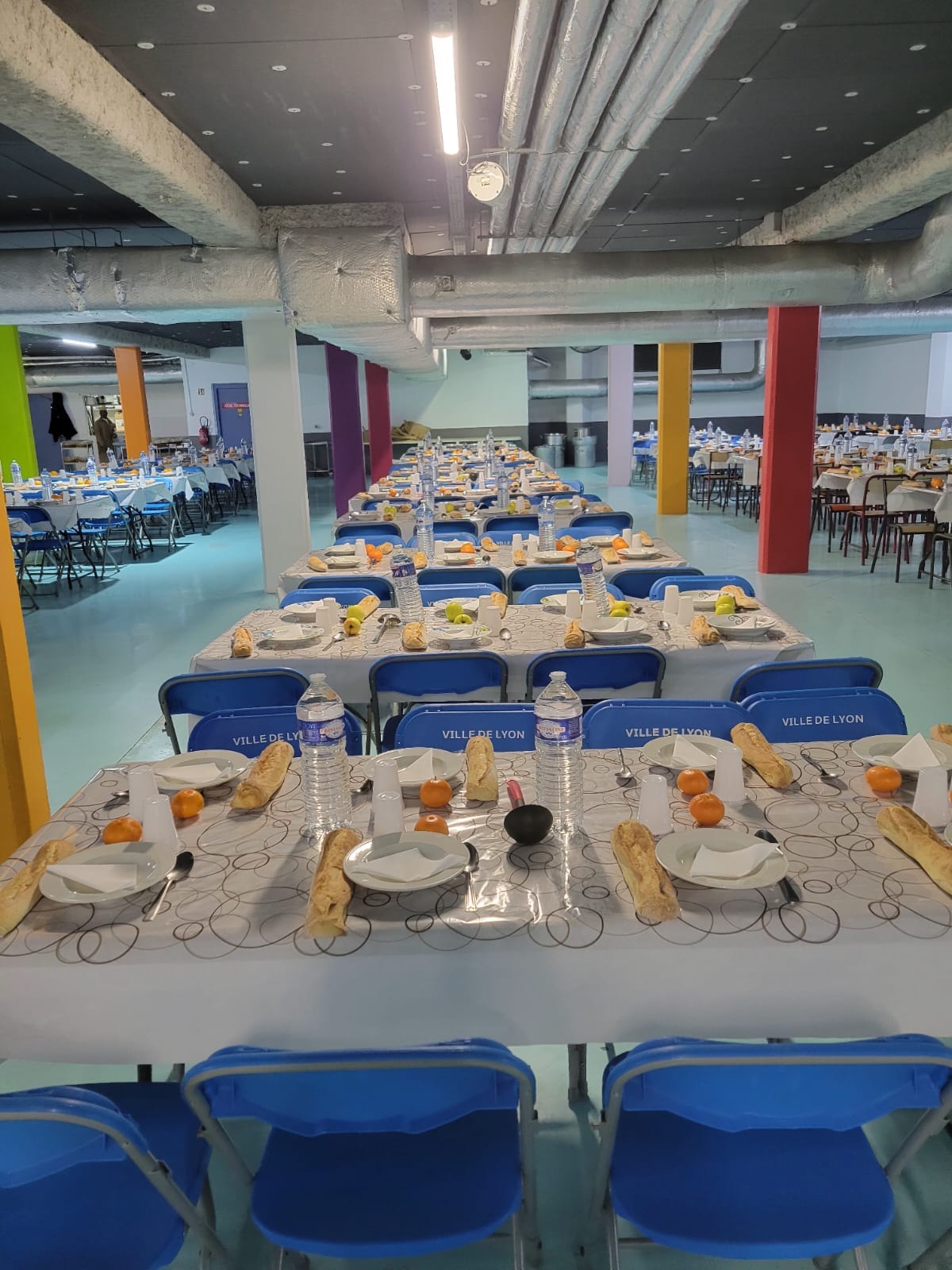Sur les photos de préparation de l'iftar qui s'est déroulé dans un sous-sol de la Grande mosquée située dans le 8e arrondissement de Lyon, un détail saute aux yeux : outre des chaises classiques, les convives ont pu s'asseoir sur des chaises bleues estampillées "Ville de Lyon".