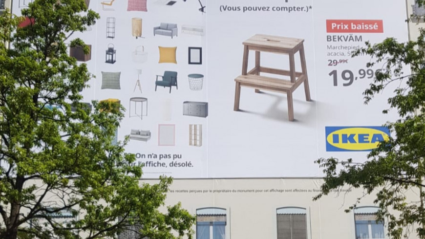 La publicité pour IKEA promet une baisse de prix sur plus de 1500 produits. Et pour Camille Augey, la DRAC participe à la mort du petit commerce de centre-ville en validant cette installation : "Soutenons le commerce indépendant plutôt que d'inciter les Lyonnaises et les Lyonnais à aller consommer dans des grandes chaînes hors de Lyon !", s'emporte l'adjointe au Commerce.