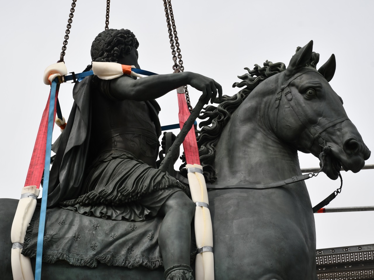 L’édifice de 9,5 tonnes, emblème de la plus célèbre place de la capitale des Gaules, présentait des fragilités au niveau du socle en marbre, quelques fissures mais aussi un problème d’oxydation. Le cavalier et son manteau ont également été enlevés pour être révisés pour la première fois de l'histoire de la statue.
