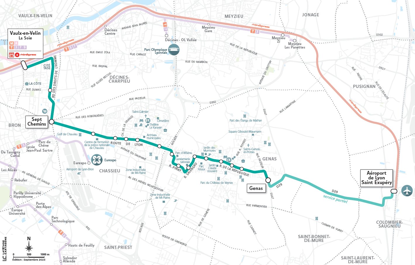 Il desservira Vaulx-en-Velin La Soie, Décines-Charpieu, Chassieu, Genas et l'aéroport de Lyon Saint-Exupéry.